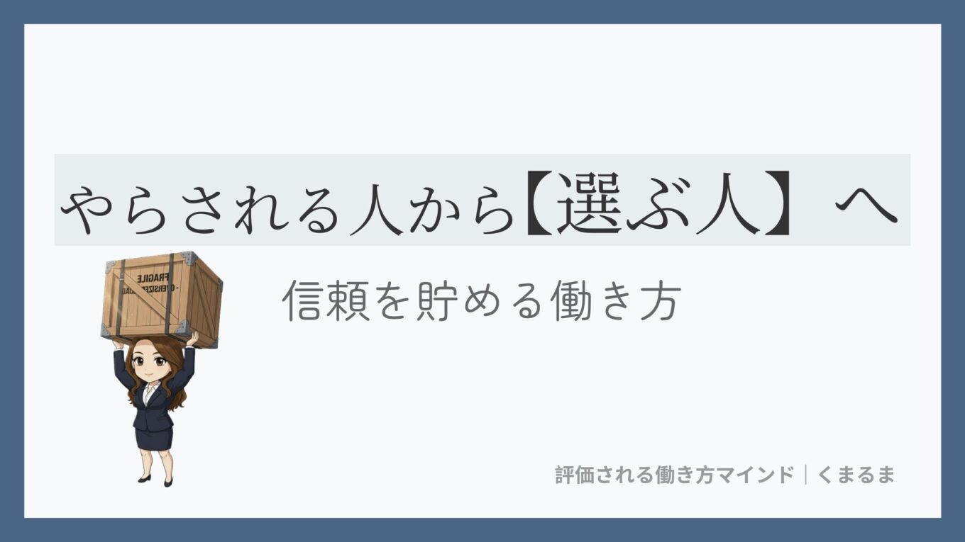 新着記事 News 選べる仕事はあえて「困難な方」を選ぶ ― 信頼される人の小さな習慣 2025.10.17 評価される人の習慣・事例 報連相が苦手でも大丈夫。コミュニケーション下手を克服する3つのステップ 2025.10.14 コミュニケーション・人間関係 仕事ができる人の共通点|まずはできる先輩の真似をせよ!! 2025.10.11 成果を出す仕事術 キャリア戦略・自己成長 コミュニケーション・人間関係 メンタル・マインドセット 成果を出す仕事術 自己紹介 評価される人の習慣・事例 人気記事 Popular Post くまるまProfileマインドを整えて「評価される自分」へ。 上司に伝わる頑張り方・報われる働き方を発信しています。 一歩先の軽やかな働き方を一緒に整えましょう。 プロフィールを読む